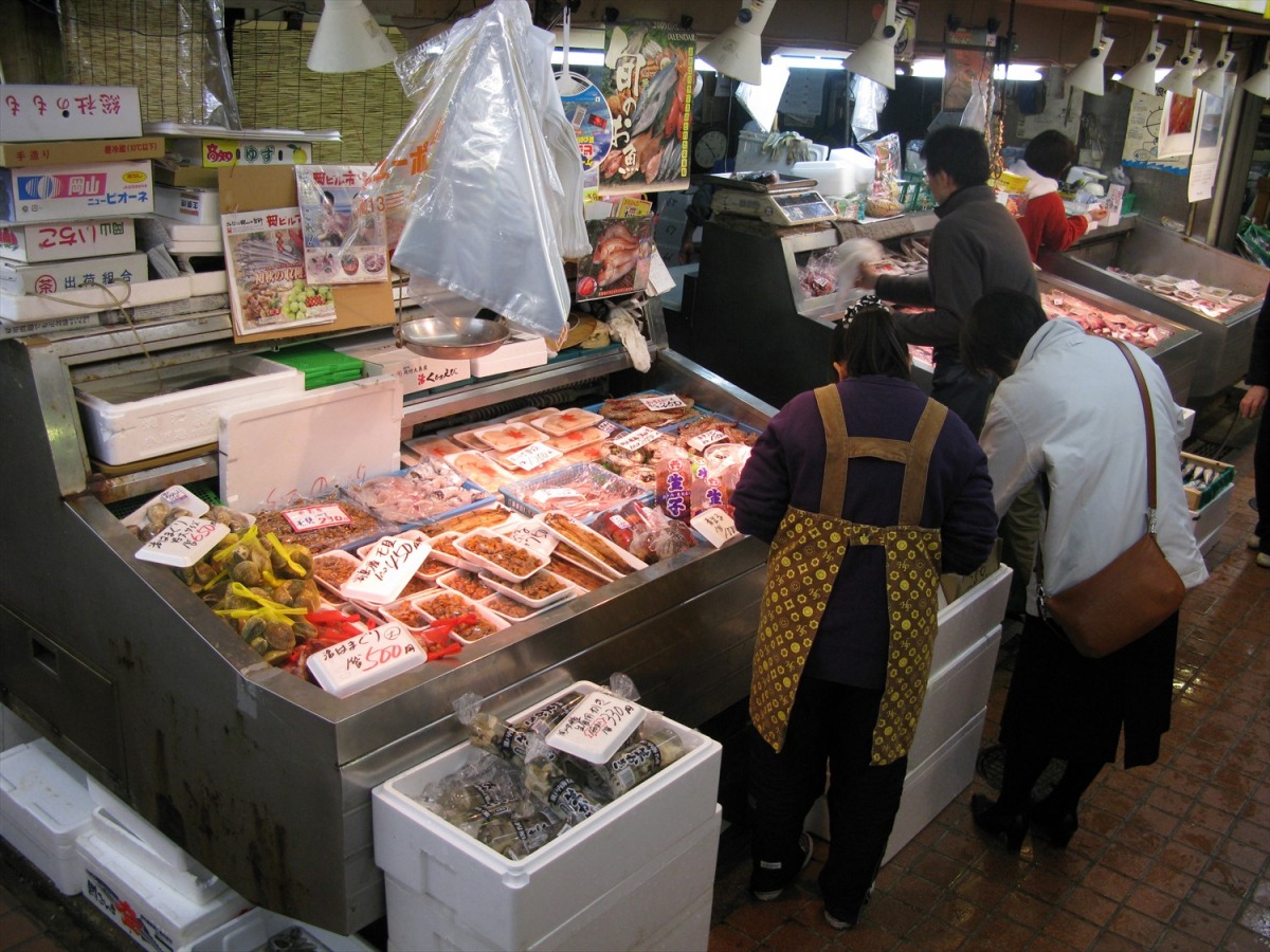 岡山駅から徒歩5分。朝7時30分から営業している人情味あふれる「岡山市民の台所」的市場です。岡山のくだもの、岡山の野菜、岡山の肉、岡山の魚といった地元のおいしいものがふんだんに揃っており、市場内には喫茶店やラーメン屋などの飲食店もあります。