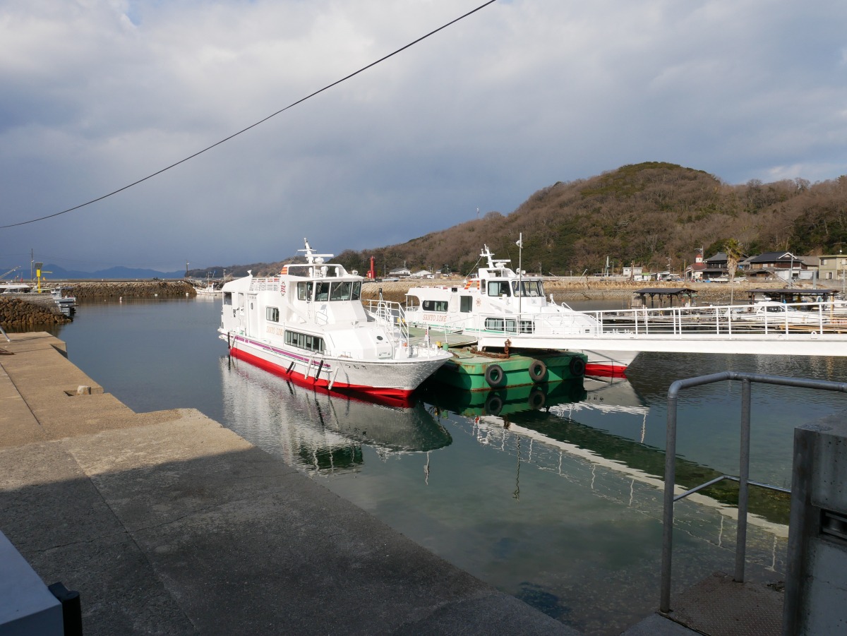 白石島から真鍋島までの乗船時間は約30分。12時24分に本浦港に到着です。