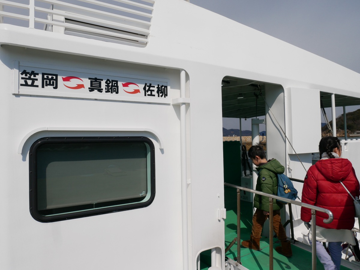 15時35分真鍋島発、15:43北木島(大浦港)着の三洋汽船に乗ります。大人500円(小人半額)を船内で支払います。