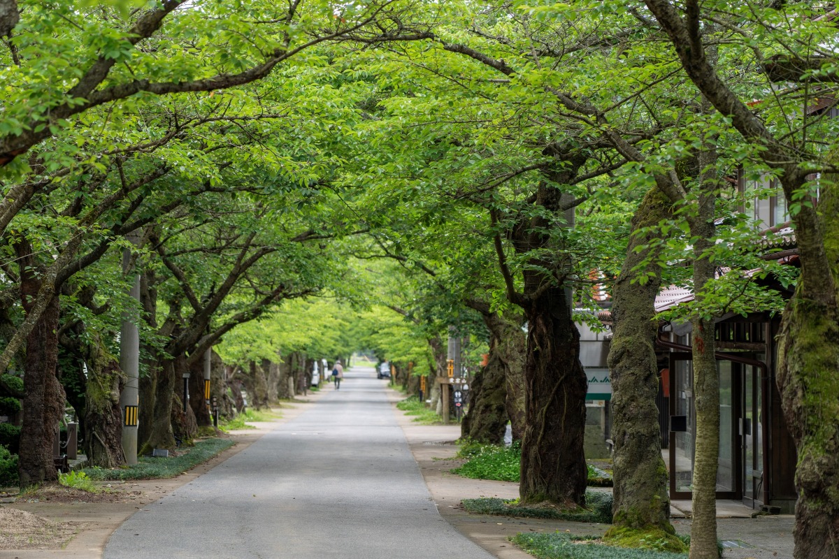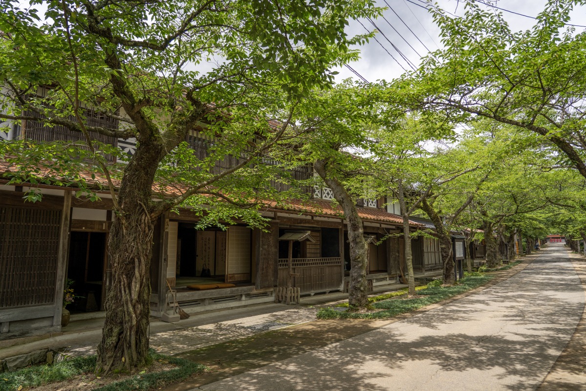 春には桜のトンネルが出現する新庄村のがいせん桜通り。その通りのほぼ真ん中に位置するゲストハウス「本陣 佐藤邸」は、松江藩の松平家が参勤交代の際に宿泊したという場所にあります。