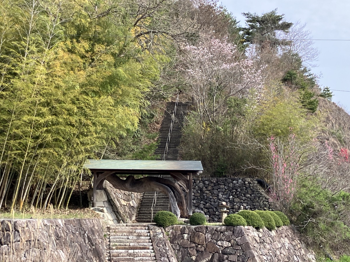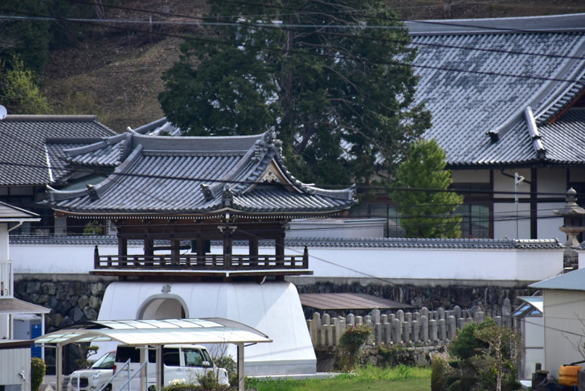 ゆるやかに登っていく道沿いの左手、松尾山のふもとには白壁の寺院が。行基が建立したとされる「松本寺理性院(しょうほんじりしょういん)」です。竜宮造りの鐘楼門。どしりと風格ある本堂。細工も見事で見入ってしまいます。ヒノキ造りの薬師如来坐像は県の指定文化財なんだとか。