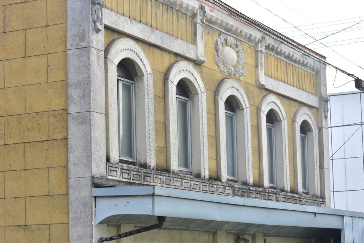 クリーム色の看板建築