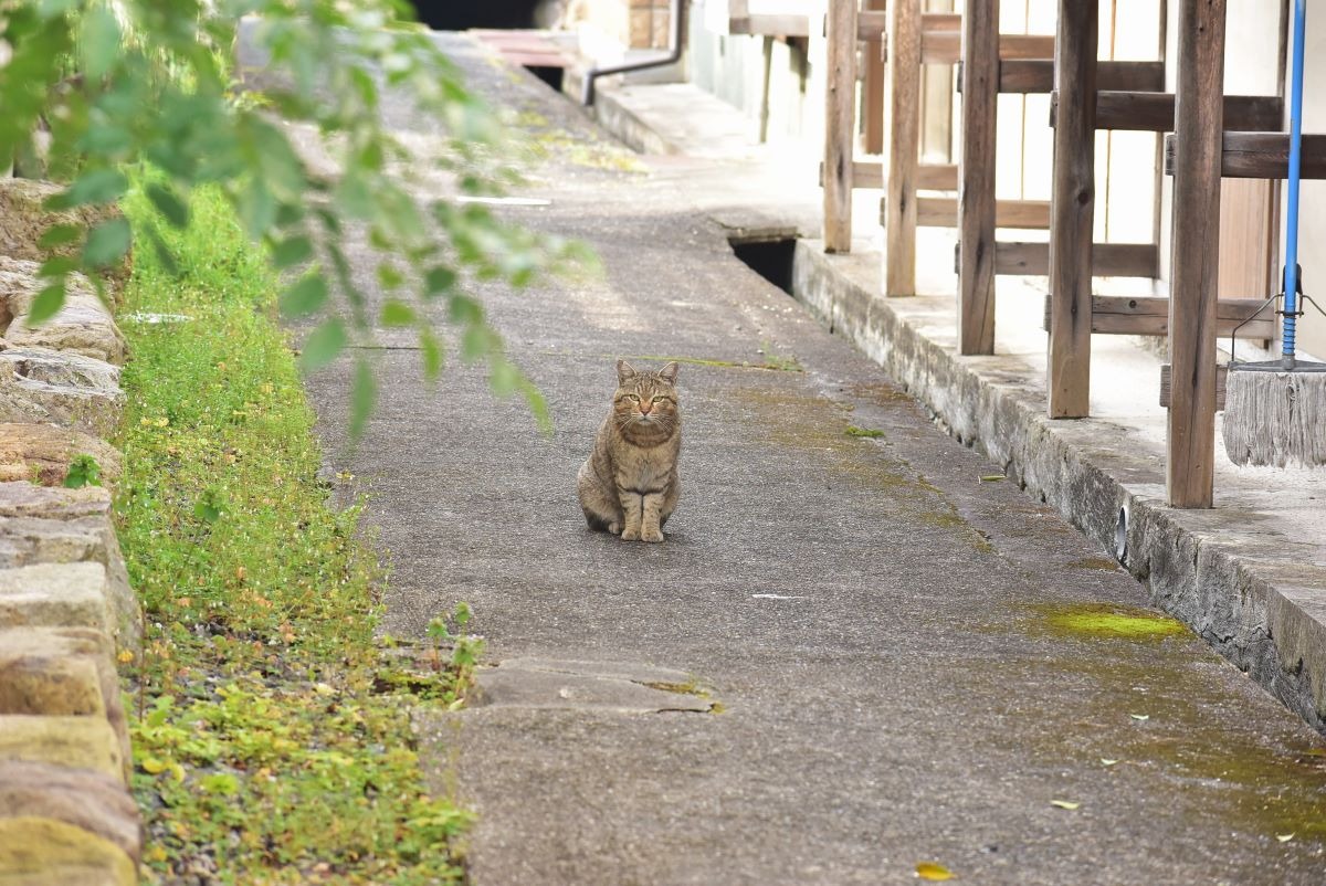 古い街道沿いを歩いていると、ふてぶてしい顔の猫が「JR吉永駅から備前市営バスも走りよるが」とでも言いた気に、じっとこちらを見ています。「閑谷まで歩きたい気分なのです」とご挨拶。どうも納得いかない表情ですが、黙って静かに見送ってくださいました。