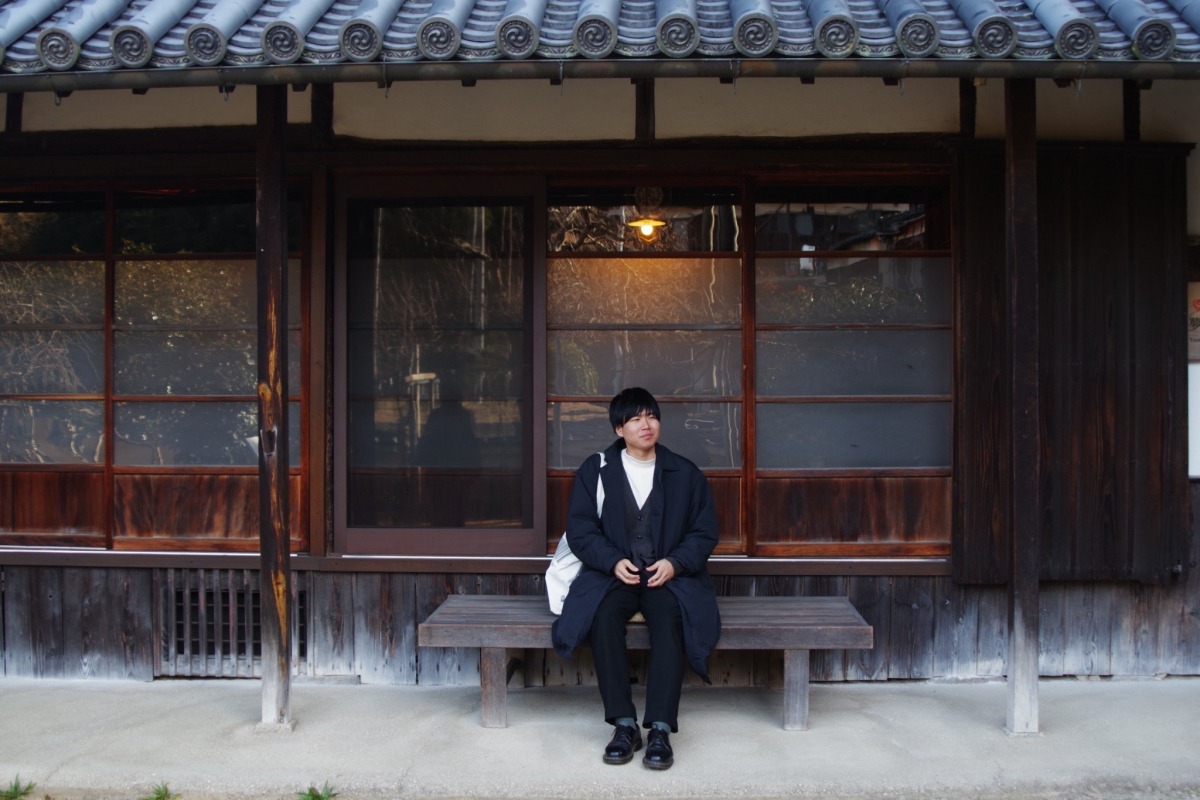 入り口横の軒下にはベンチが設置されており、築250年の生家をバックに写真を撮ることができました。