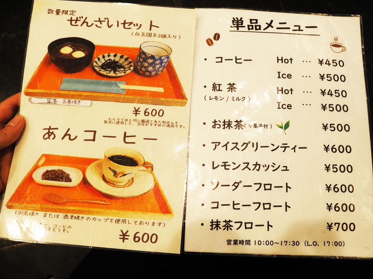 美観地区店には喫茶が併設しており、「むらすゞめ」のほか、「むらすゞめ」と同じあんこを使ったぜんざいやあんコーヒーも楽しめます。街歩きのひと休みにぴったりです。