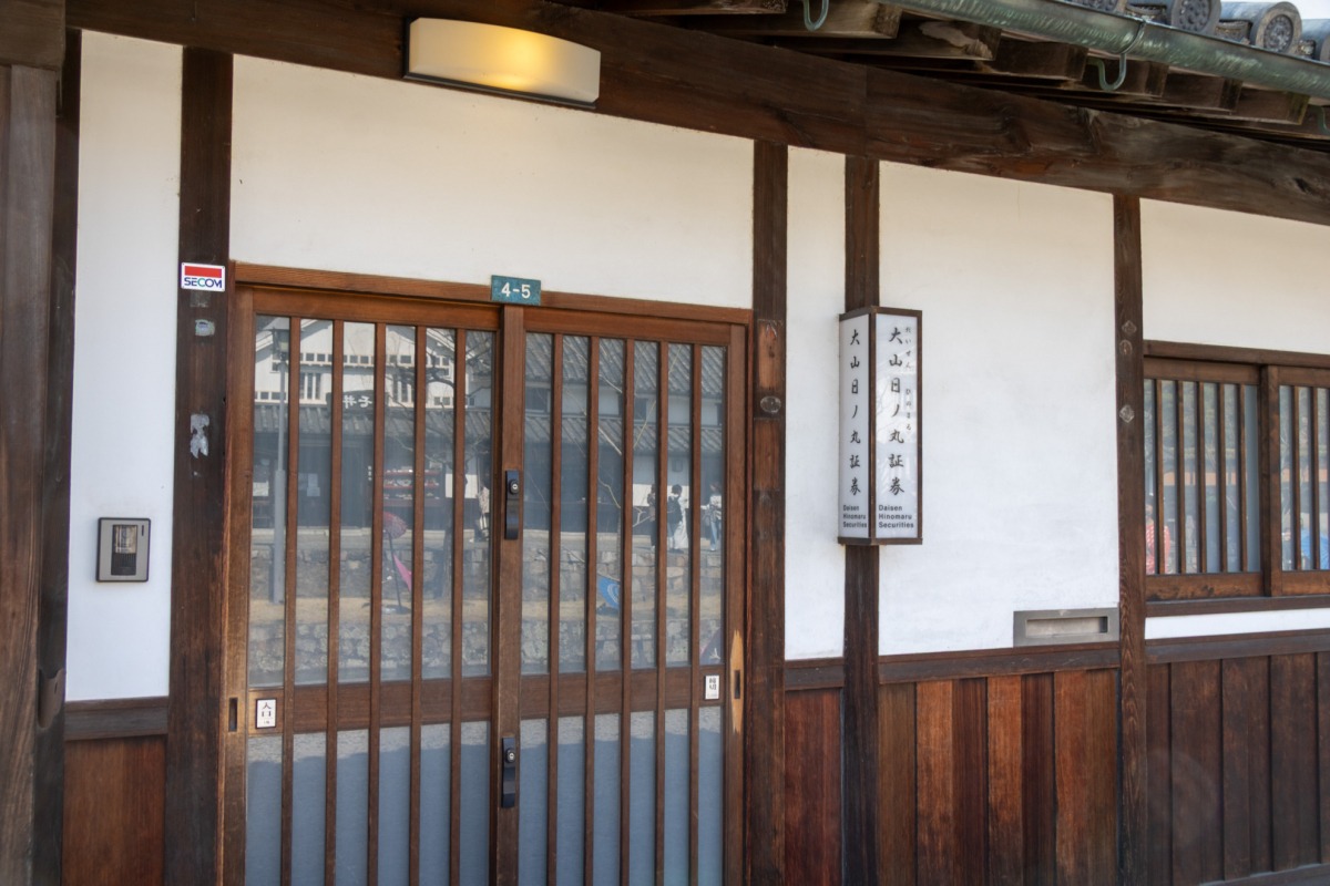 倉敷美観地区の古い町並みの中に、「大山日ノ丸証券」という証券会社があります。