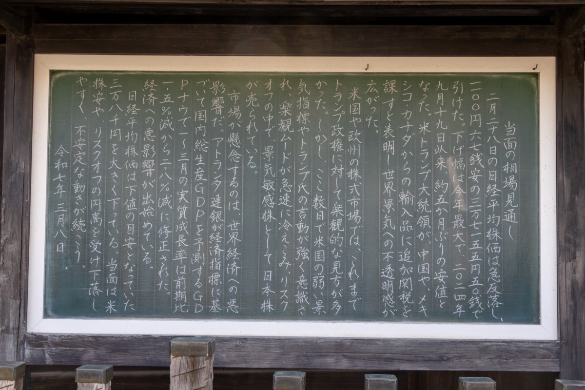 - レトロな黒板が興味深い「大山日ノ丸証券」