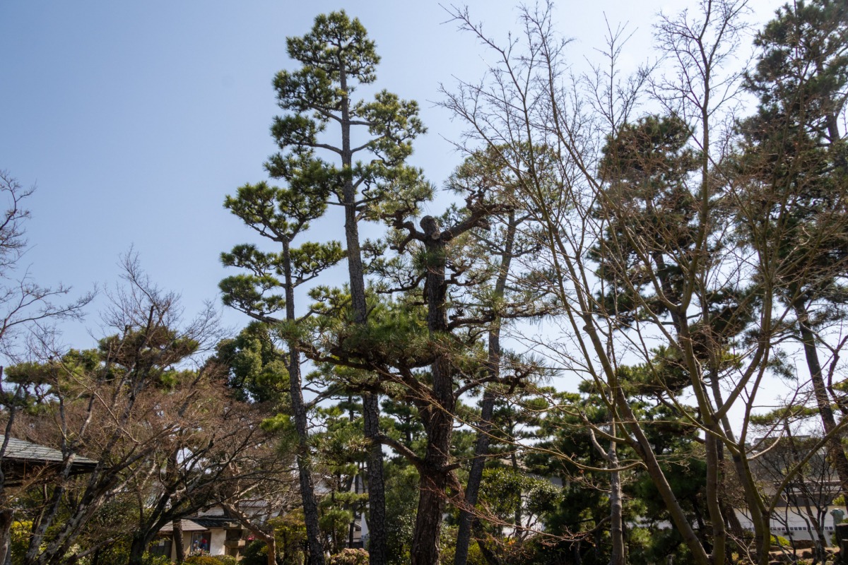 こちらの日本庭園には、数多くの灯籠(とうろう)や、まっすぐに伸びた松の木など、派手さはないものの多くのこだわりが詰まっています。また、園内にある「敬倹堂(けいけんどう)」は茶会などの各種イベントのほか、一般にも貸し出しされています。