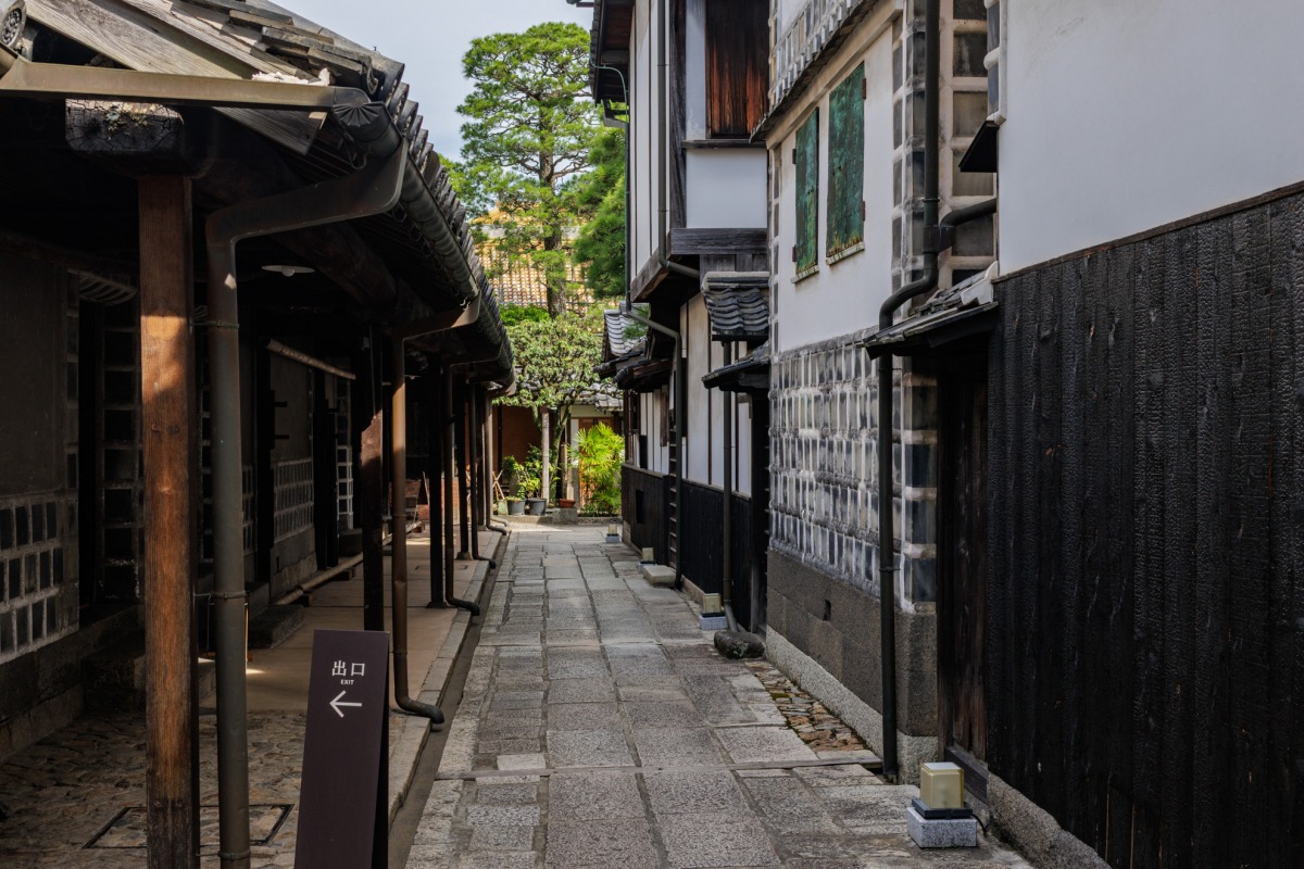 倉敷美観地区には、入り組んだ狭い路地が各所に張りめぐらされています。倉敷ではこれらの路地は「ひやさい」と呼ばれていて、その語源は差し込む日の光が弱い(浅い)ようす、隣の家の樋(とい)が密接したようすなど諸説あるそうです。
