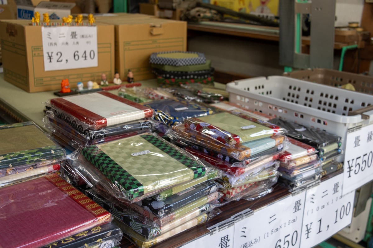 倉敷特産の畳縁を使った、お土産に最適なミニ畳を販売されていました。価格もお手頃で、フィギュアを飾ったりするのに人気があるそうです。