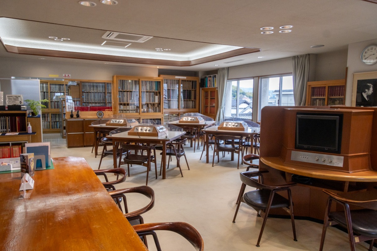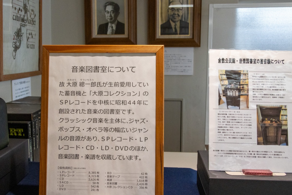 故 大原總一郎氏が生前に愛用していた蓄音機と「大原コレクション」のSPレコードを中核に1969年(昭和44年)に創設された音楽図書室です。