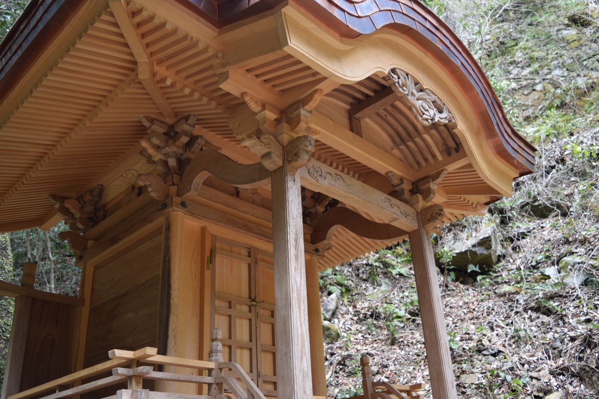 本殿(祠)は老朽化が進んでいたため、地元有志によってクラウドファンディングが実施されて2024年に建て替えが完了したばかりです。とても素敵なお話ですね。もとの部材を可能な限り再利用したそうなので、新しいけれど落ち着いていて、周囲にしっかり溶け込んで見えます。