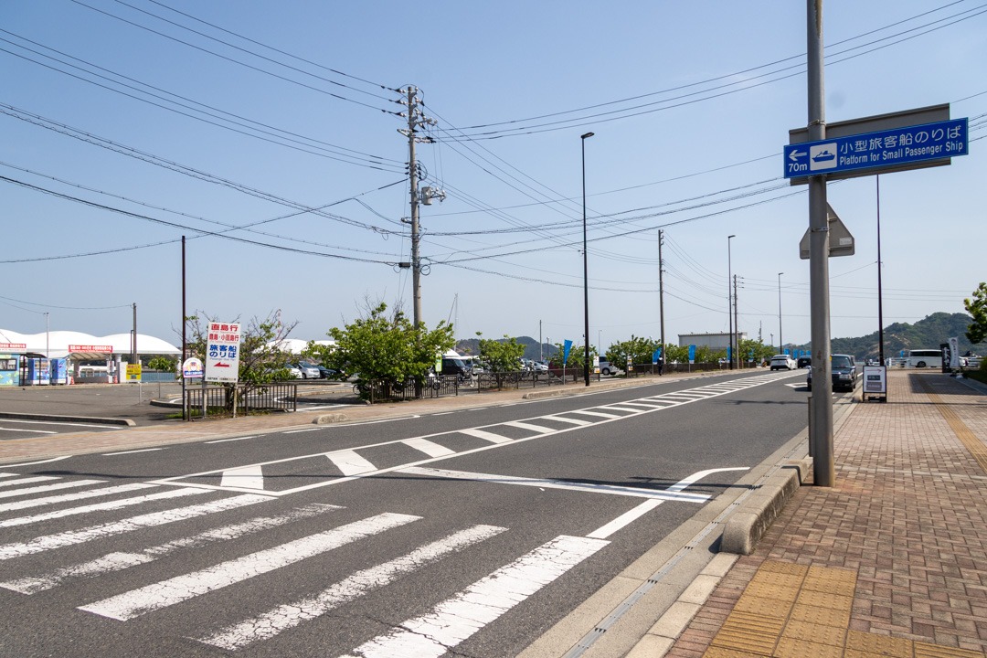 駅の外に出ると歩道橋がありますので、それを渡り南へ歩くこと約3分、左手に児島観光港が見えてきます。