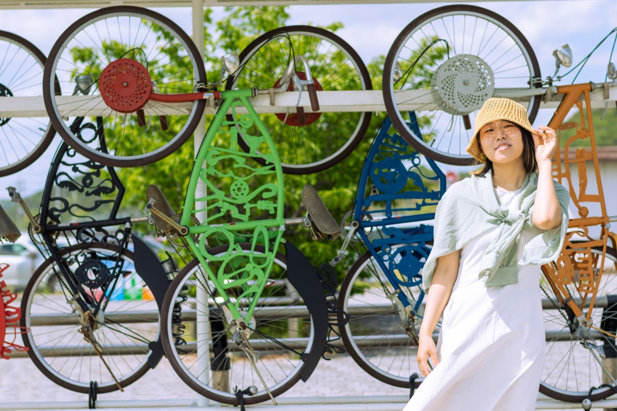 放置された自転車をアートな自転車に再生した作品で、レンタサイクルとして実際に借りて乗ることも可能です。