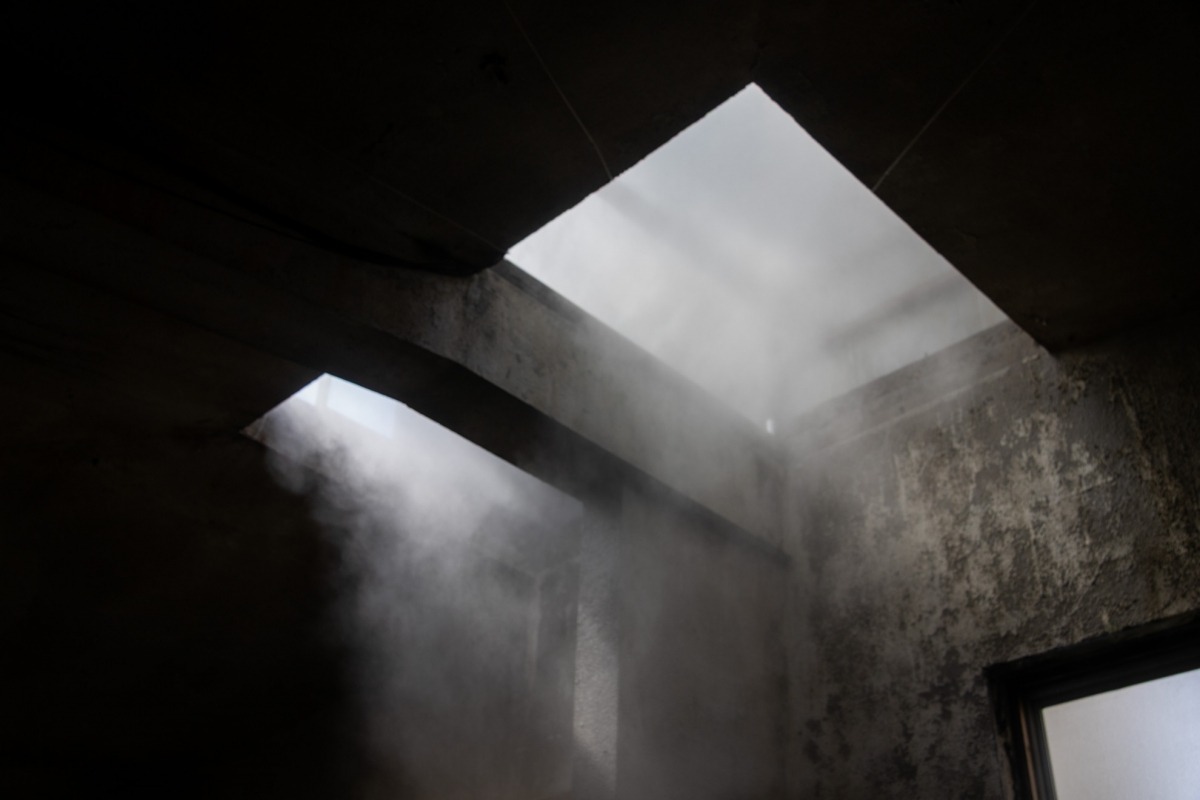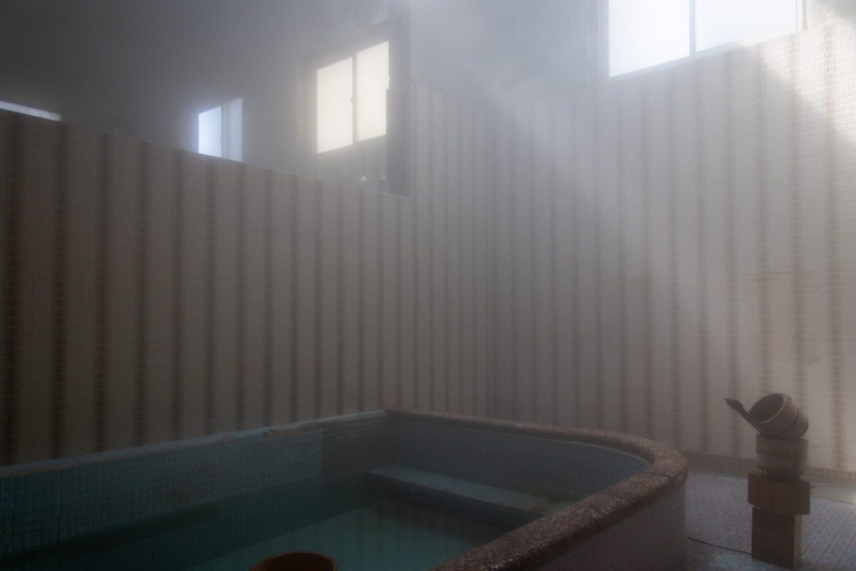 約40年前に廃業した銭湯跡を用いたインスタレーション(空間芸術)作品で、タイル張りの浴室内にミストと音が広がり、不思議な世界観を演出しています。