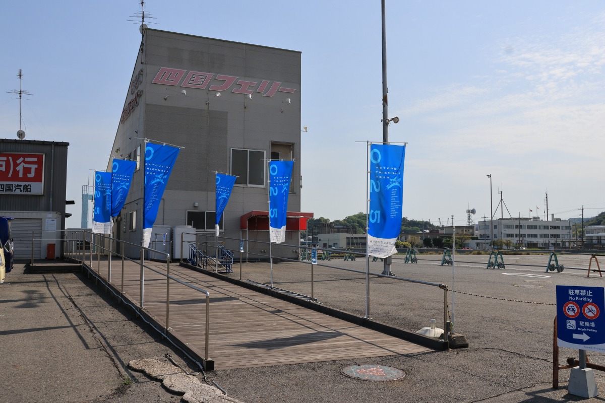 宇野港の東側に広がる緑地で、クルーズ船などの大型船が接岸できる岸壁があります。