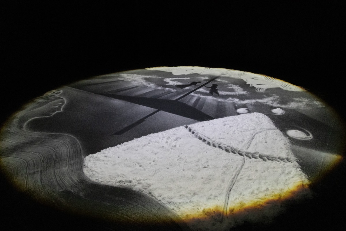 こちらの作品は、砂を使ったアート(サンドアート)を手掛けるアーティスト集団「SILT」によるもので、砂の代わりに玉野市内にて作られた塩を用いて作られています。