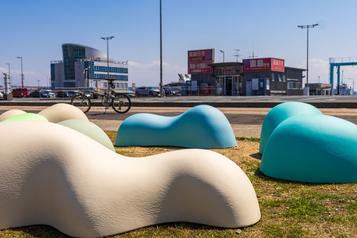 宇野港の前に不思議な形をしたベンチが新たにお目見えしました(こちらは瀬戸芸作品ではありませんが、周辺アート作品として紹介します)。