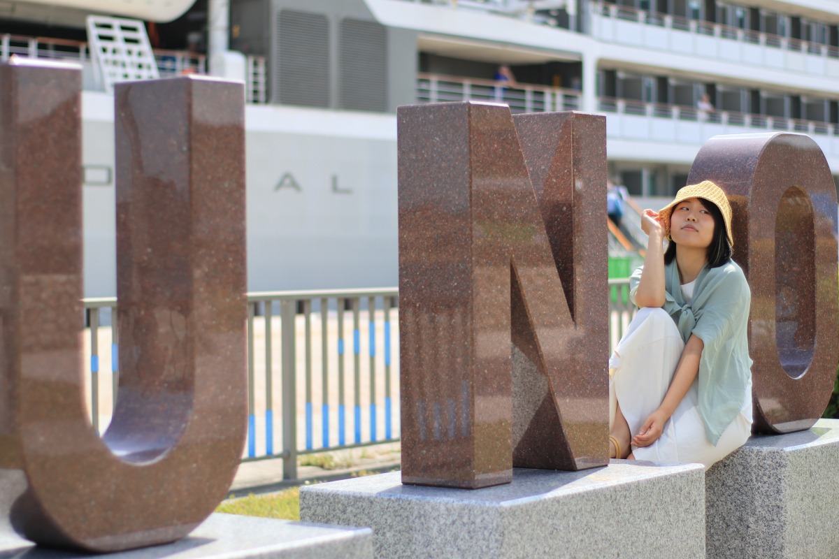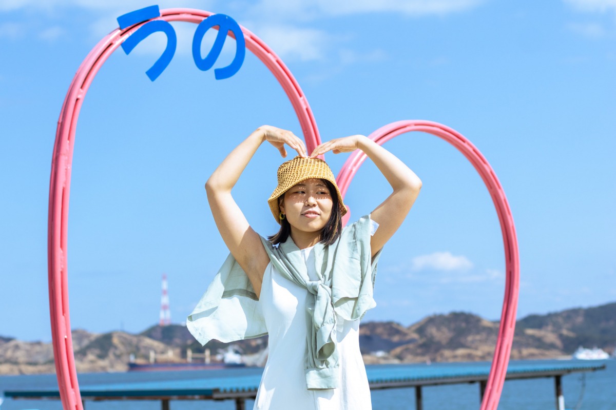 宇野港を東に望む岸壁に、新たなフォトスポットが誕生しました(こちらは瀬戸芸作品ではありませんが、周辺アート作品として紹介します)。