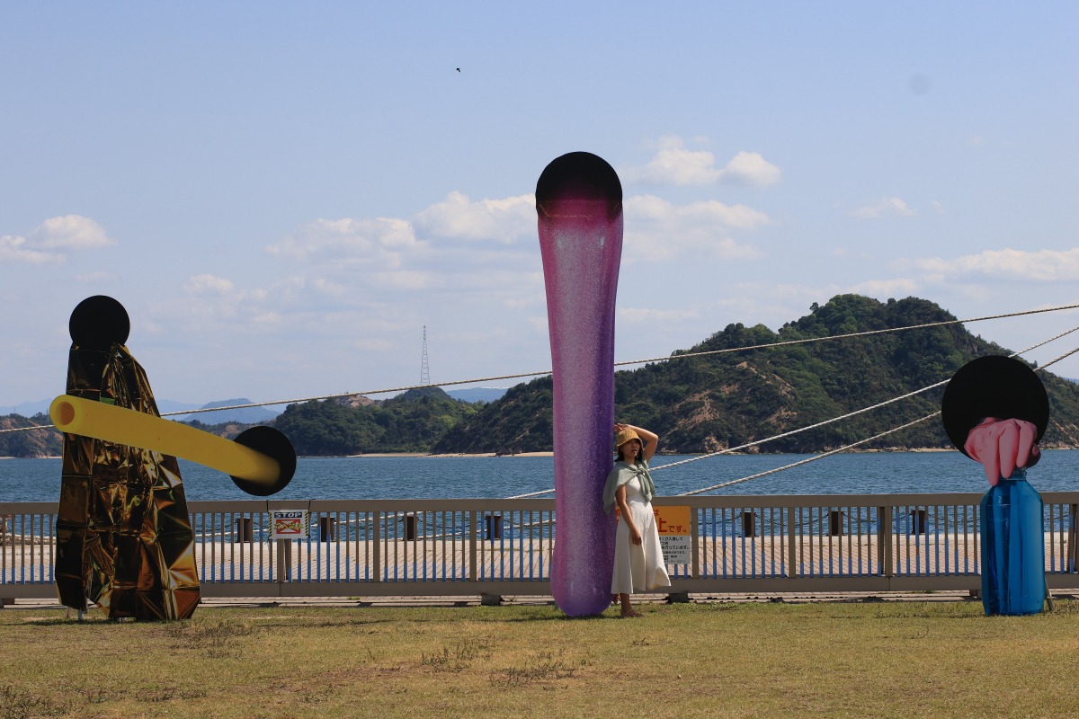 トリックアートのような作品で、海を背景にユニークな写真が撮れることで人気です。