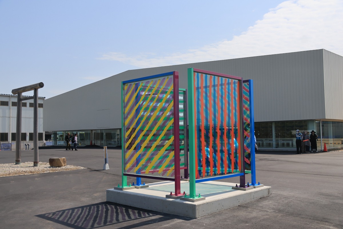 工場建屋の前に設置された作品は、金氏徹平氏によるもので2025年5月から新たに公開が始まりました。