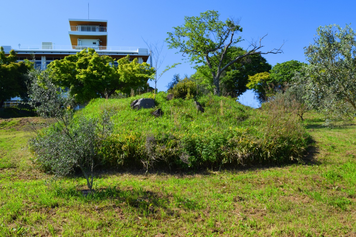 ・牛窓オリーブ園のある丘陵一帯に広がる「阿弥陀山古墳群(あみだやまこふんぐん)」では、これまでの調査で57基にも及ぶ古墳が確認されていて、それぞれに1号~57号まで番号が付与されています。