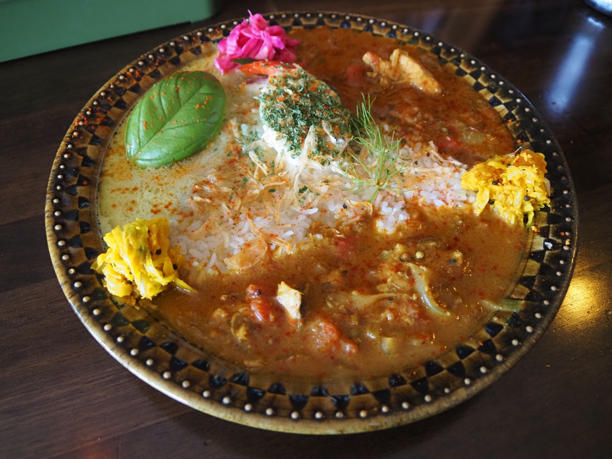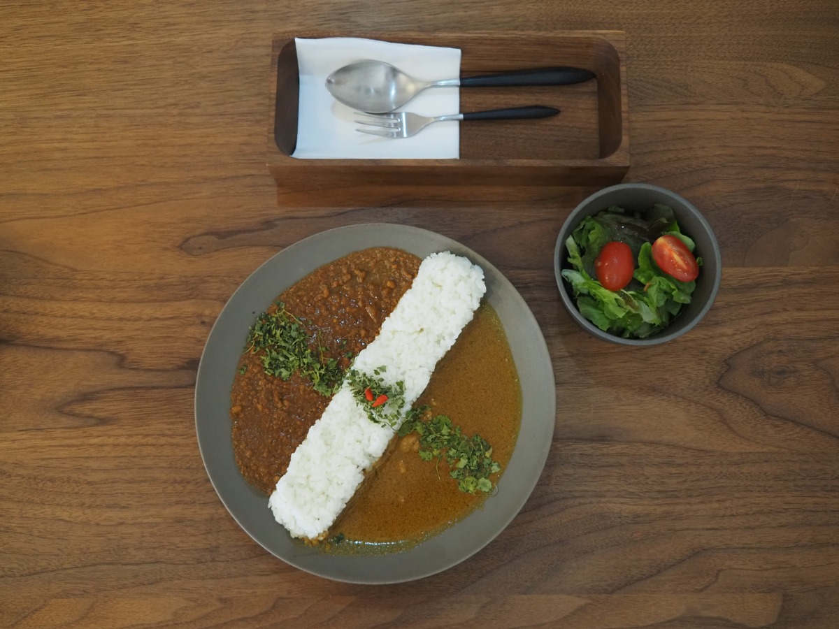 カフェでは、あいがけスパイスカレー(1,320円 税込)をいただきました。※時期によってメニュー内容は変更予定とのことです。
