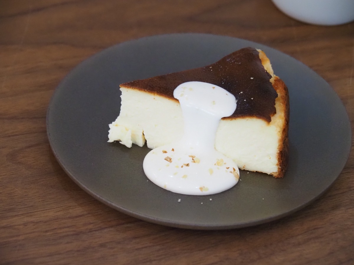 そのこだわりのコーヒーと相性抜群なのが、人気のバスクチーズケーキ。濃厚ながらも後味はすっきりとしていて、食後のデザートにぴったりです。