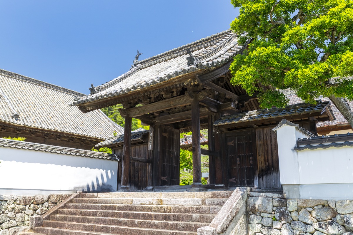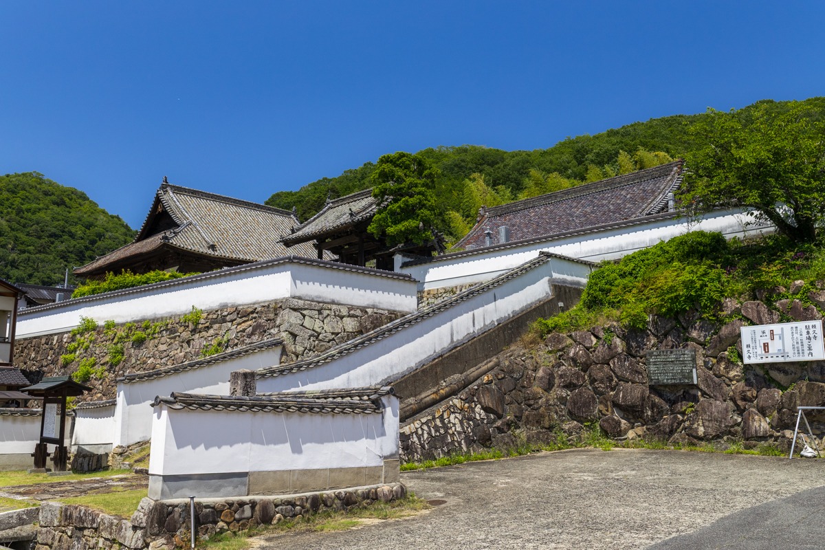 頼久寺の入口は、石段を登り切ると目の前に壁があり、すぐには境内へ入れない構造になっています。これはまるでお城の「虎口(こぐち)」のよう。なぜこのような造りになっているのか不思議に感じていましたが、ご住職のお話によると、かつて備中松山城の出城としての役割も果たしていたのだそうです。