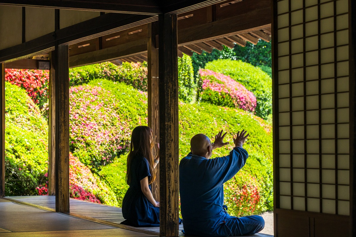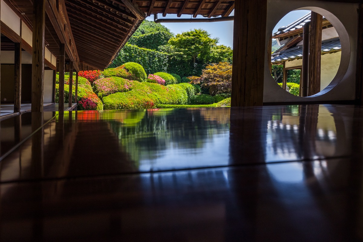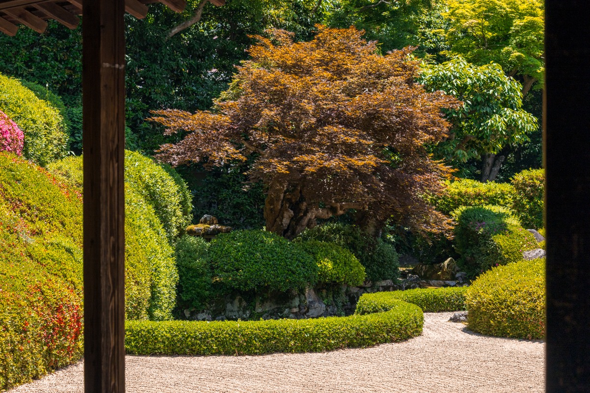 少し薄暗い屋内から縁側へ抜けると、目の前にパァっと開ける明るく、そして得も言われぬ美しい光景が広がります。この劇的な体験は、ぜひ実際に足を運んで肌で感じていただきたいです。