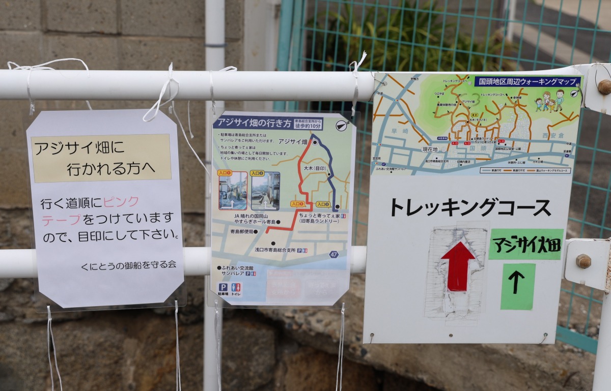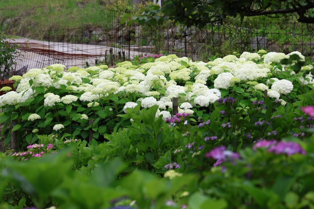 「国頭あじさい園」があるのは、もともとトレッキングコースとして人気の山で、四季を通じて多くの方が登られているそうです。その途中にあじさい畑ができ、さらに楽しめるコースになっています。瀬戸内海が眺められ、空気もきれいで素敵なところです。ウグイスの声も響いていました。ぜひ訪れてみてください。(トイレはないので注意)