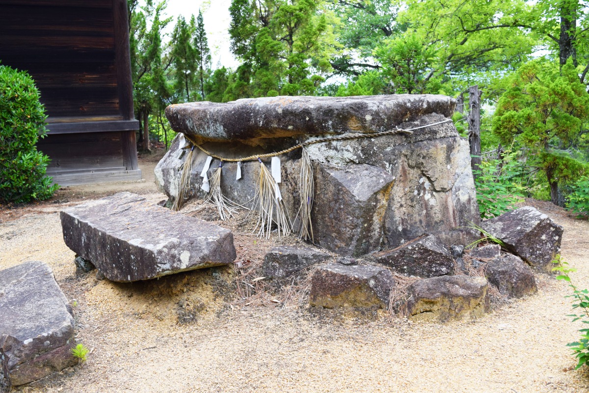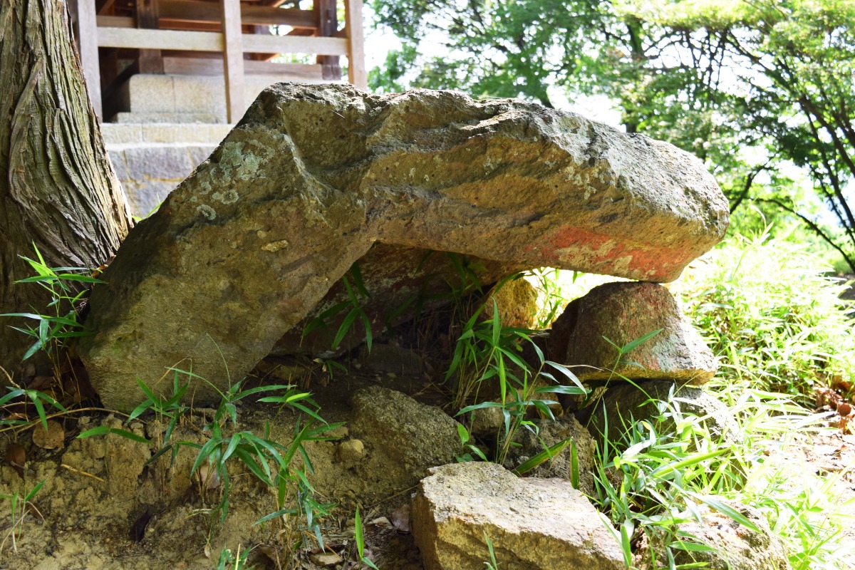 板状の岩を組み合わせて作られた「箱式石棺」です。意図は不明ですが岩の隙間をモルタルか何かで埋めてあるようです。しかしながら、地元の方から大切にされていることがよくわかります。