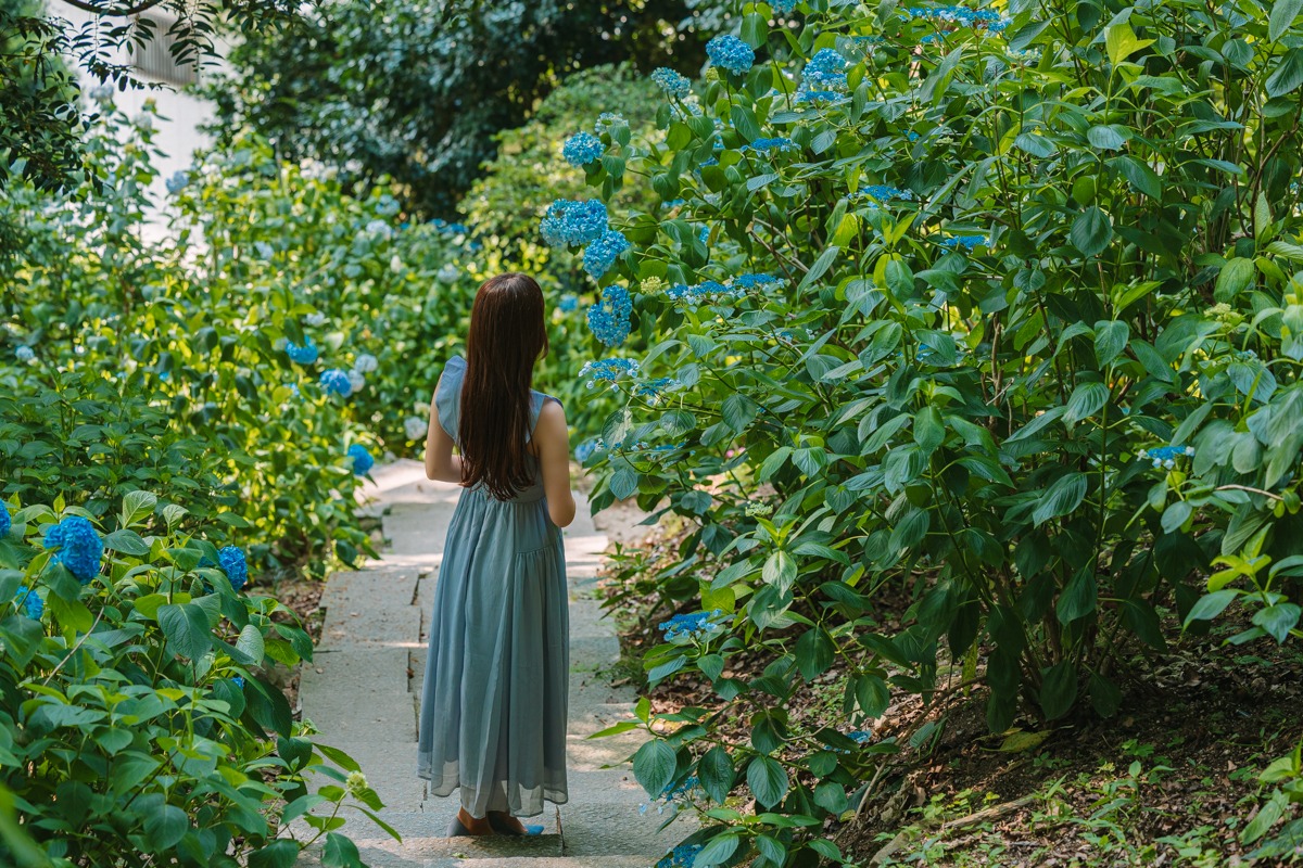 見頃は例年6月半ばから7月半ば頃までとなっています。近年は少し時期が早まり、6月半ばから6月末までとなる傾向にあるようです。また、見頃の時期には毎年「あじさいまつり」が開催されます。現在(6月下旬)はまさに見頃を迎えており、美しいアジサイが楽しめます。残念ながら、今年の「あじさいまつり」はすでに終了していますが、見事なアジサイはまだまだ楽しめますので、ぜひ足を運んでみてくださいね。
