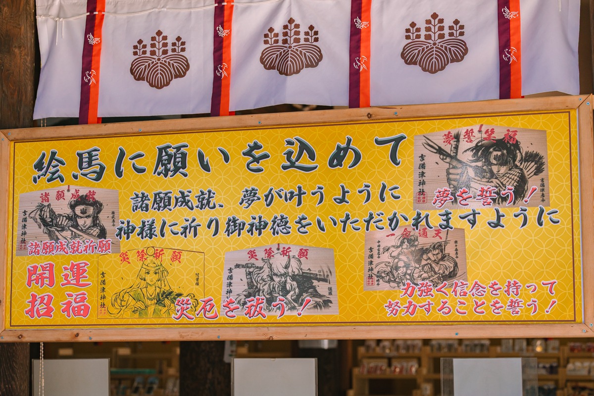授与所では、絵馬やお守りをお受けいただけます。桃太郎ゆかりの「吉備津神社」ならではの、桃太郎絵馬や桃太郎御朱印帳などもありますので、吉備津神社参拝の思い出に、また神様のご加護をいただく意味でも、いかがでしょうか。