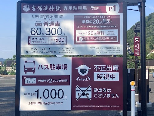 2025年5月2日より、駐車場が有料となっています。※御祈祷の方は、120分無料券をいただけます。