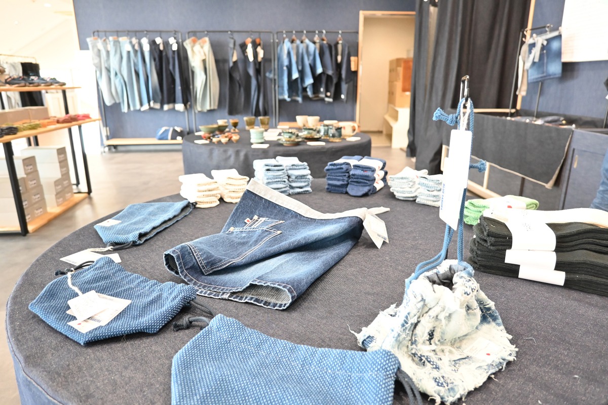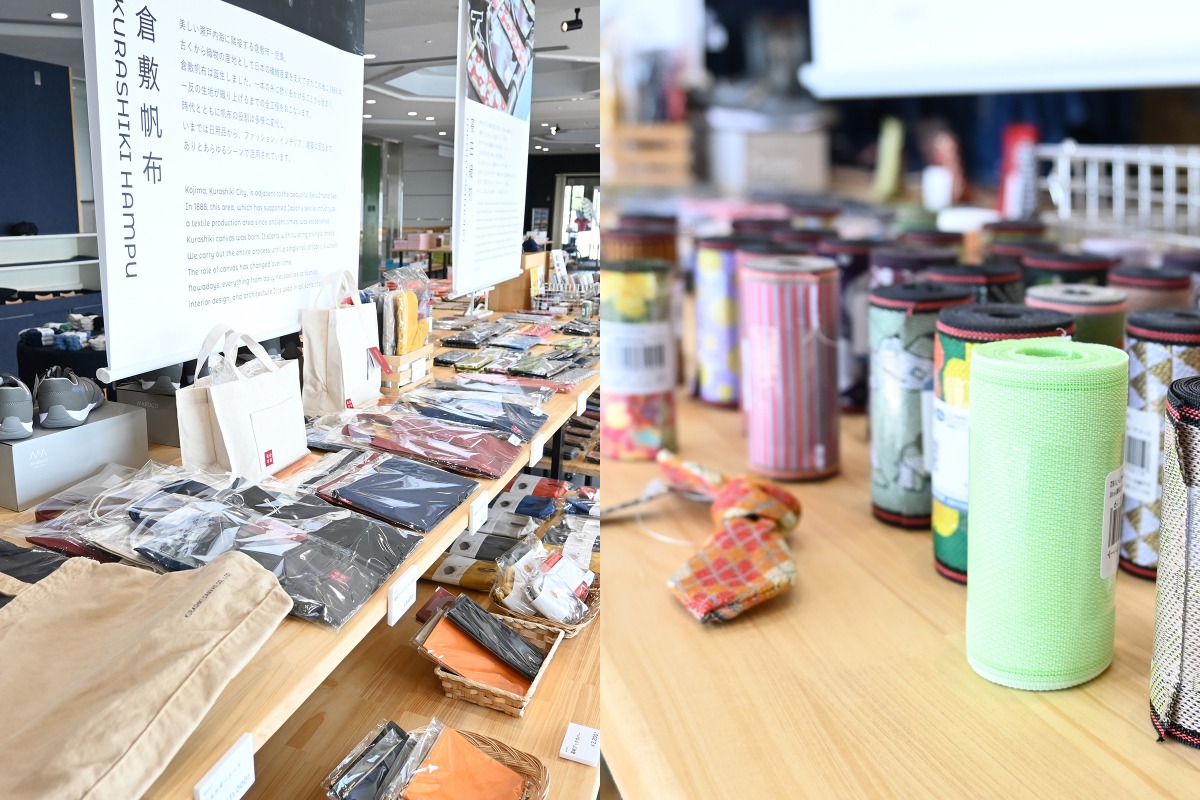 ショップを奥に進むと、児島の繊維産業に焦点を当てた展示販売コーナー。