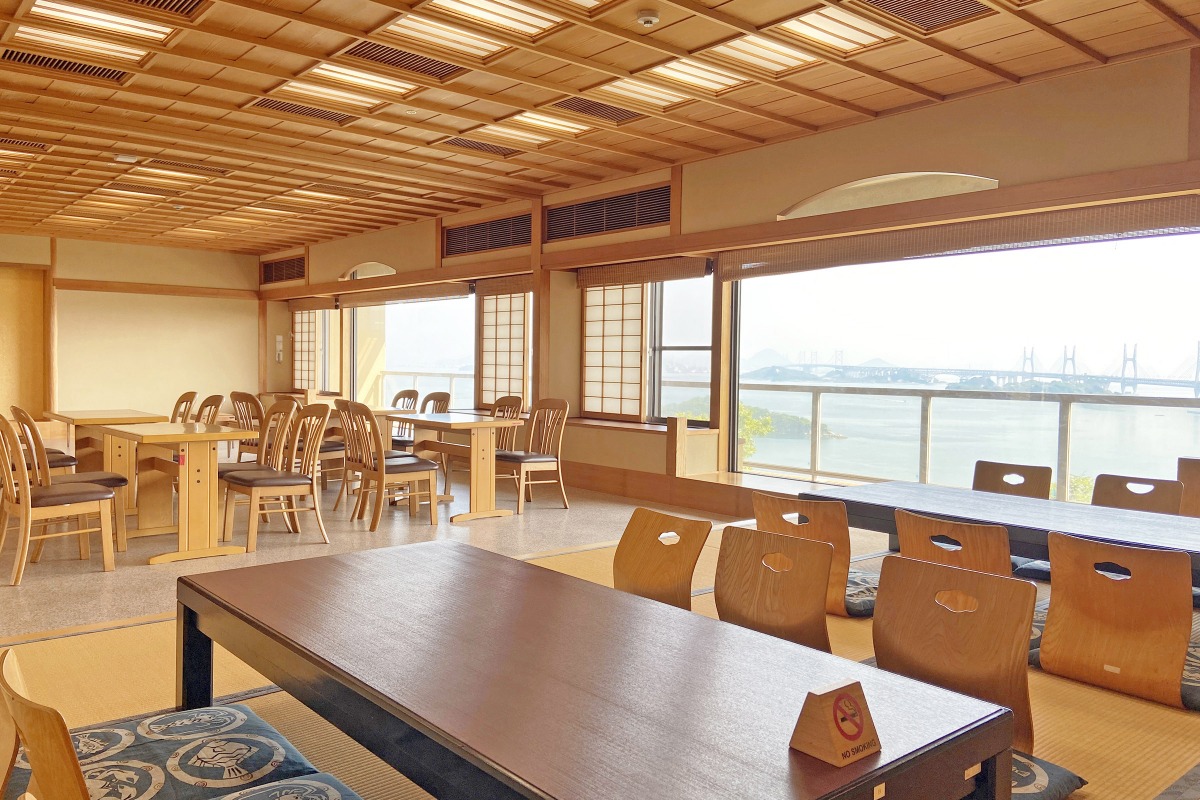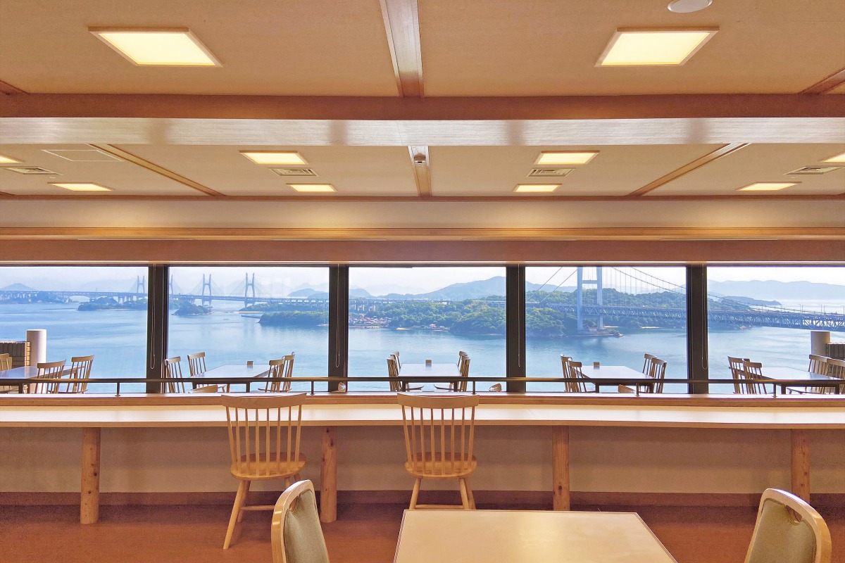 一面の窓から備讃瀬戸を一望するロケーションも人気で、瀬戸大橋と多島美が織りなす絶景を満喫できます。