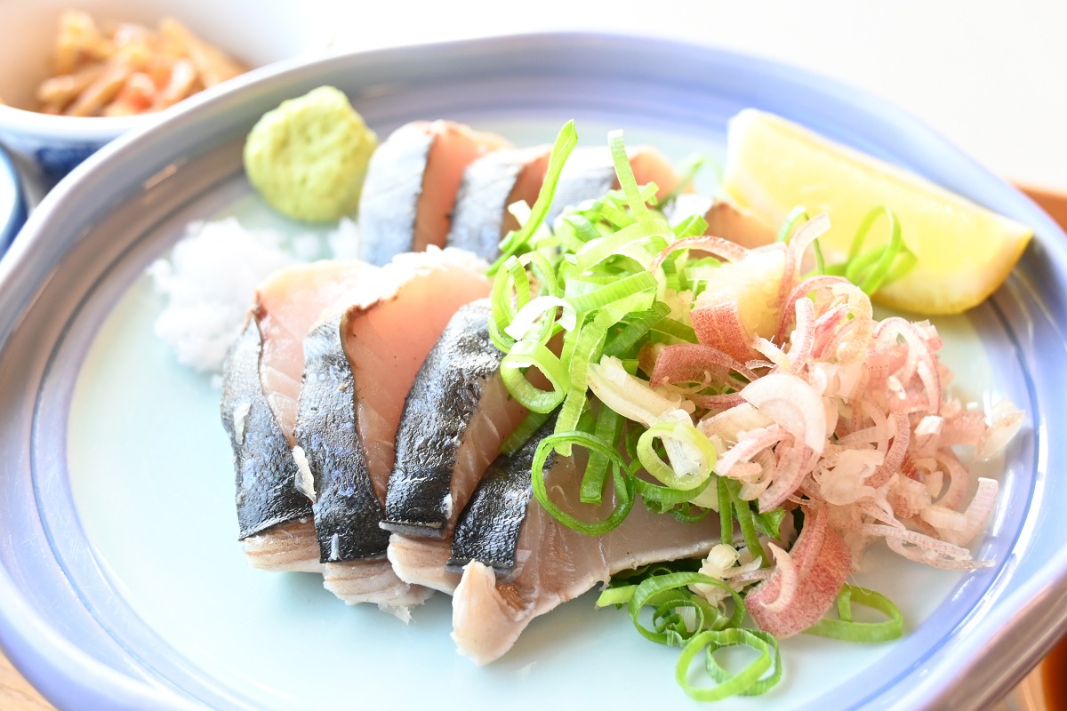児島の塩でいただく「サワラのたたき」