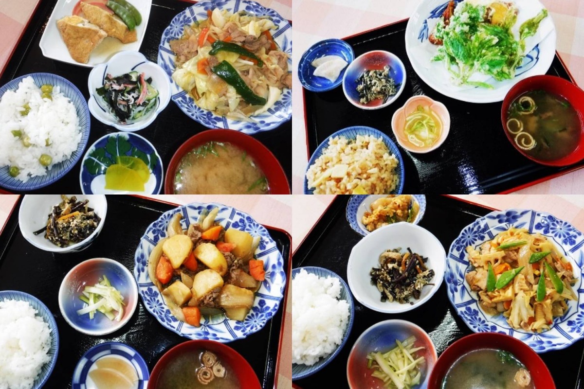 平日、1日10食限定の「おふくろ定食」(980円)。山菜の天ぷらに筍ごはん、肉じゃがと蕨の卵とじ、筍と豚肉の野菜炒め、えんどうご飯など、旬菜を盛り込んだおかずやご飯は、一度食べるとファンになる人続出。その時期、その日の食材によって献立が変わる、人気の地産地消ランチです。