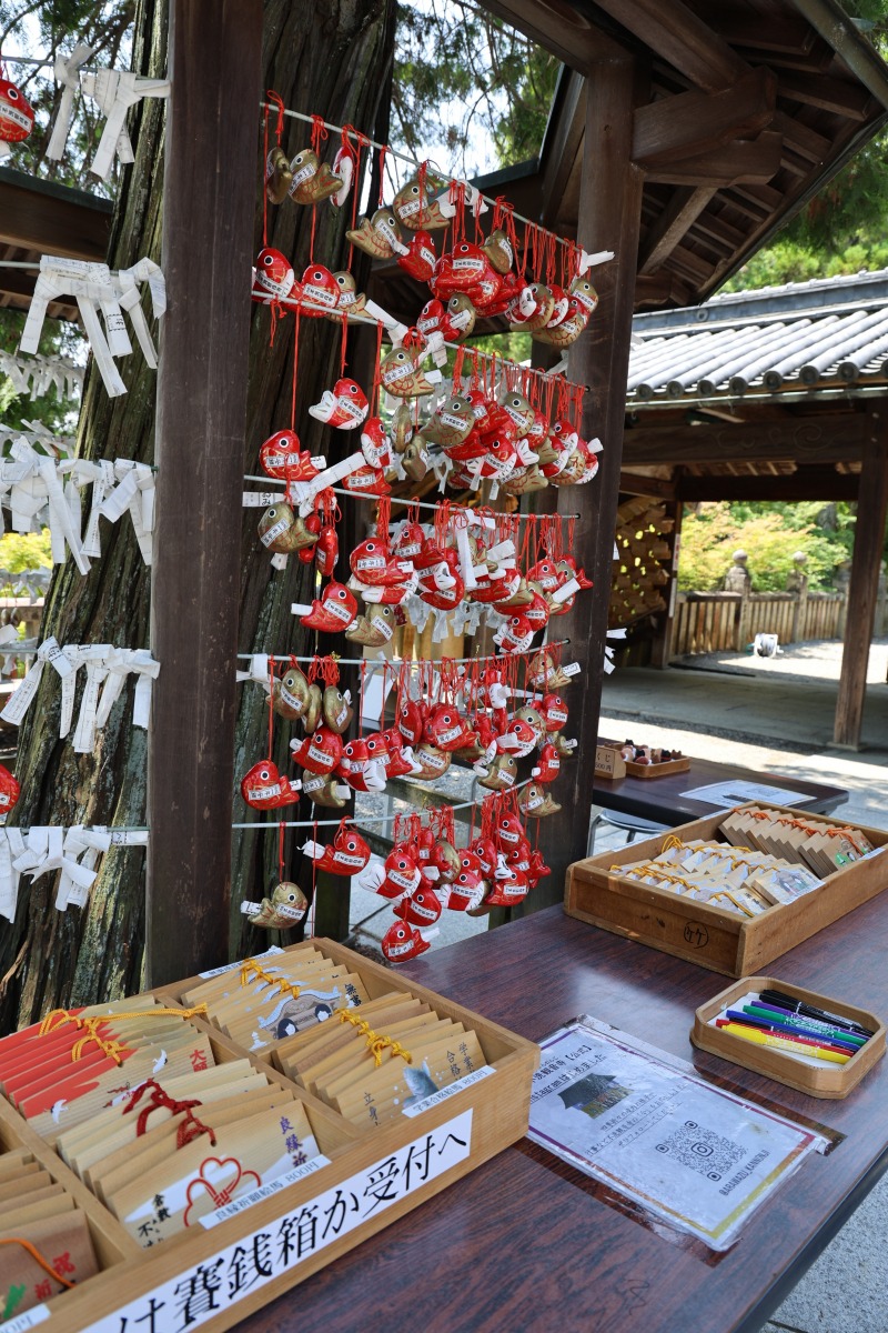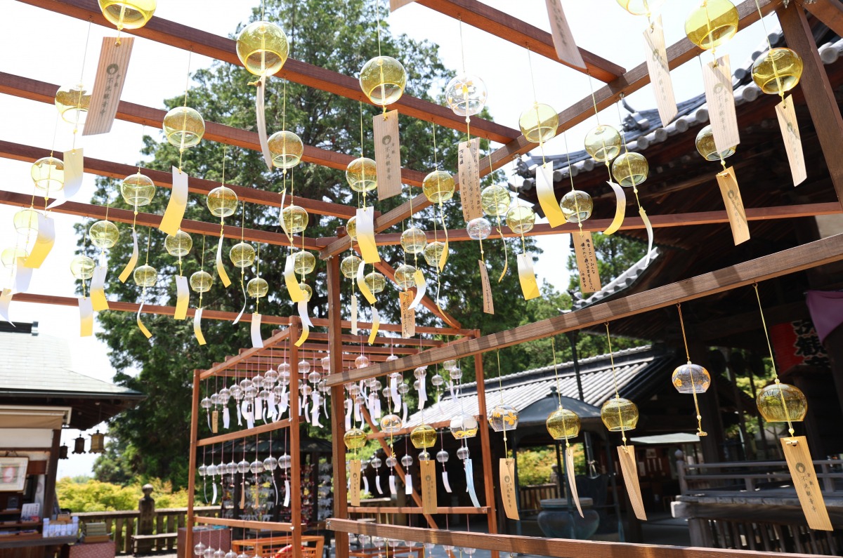 今年で2回目の開催となる「息災風鈴」の音色が、時折吹く風で心地よく響いていました(例年6月1日~開催。2025年は9月2日まで)。ガラスの音色に癒されます。写真の大観音像の所には霊水である開迦水(あかすい)が沸いていて、受付で入れ物をもらって持ち帰ることもできます。本尊を信じて生まれてきた子供を三日三晩たった後、この霊水で洗うと無病息災、かつ安楽に成長すると言われています。