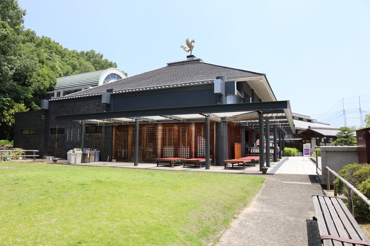 高台に建つ建物が、参拝者のご祈祷を行う紫雲殿です。授乳室や子供が遊ぶことのできる蓮華亭もあり、トイレにはベビーベッドが置かれていました。女性と子供に優しい環境が整っていました。