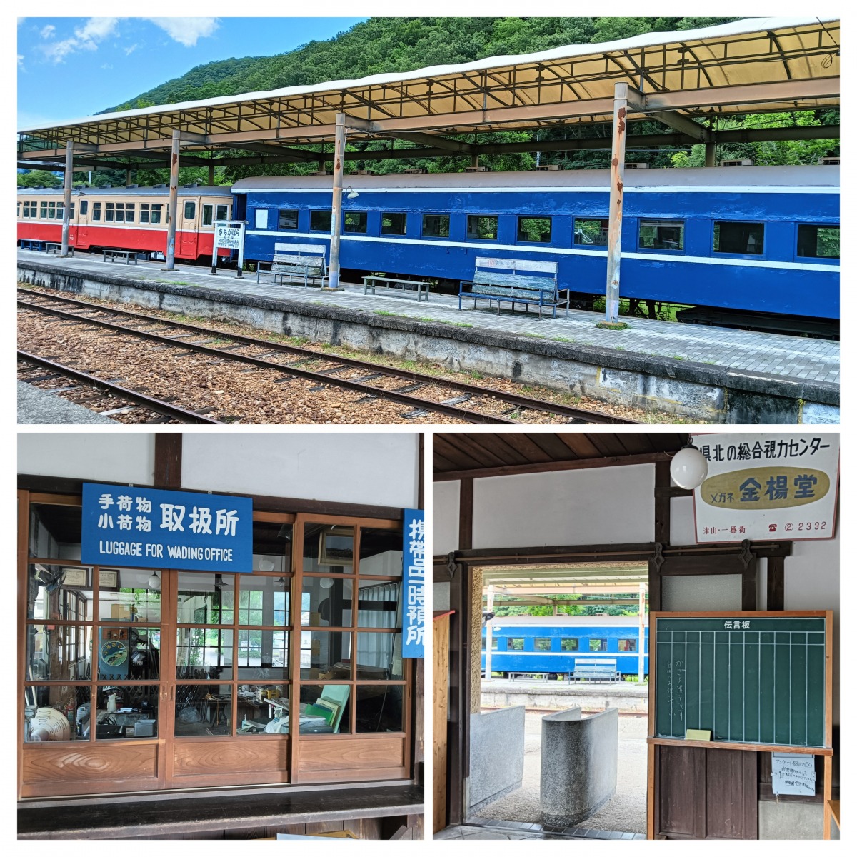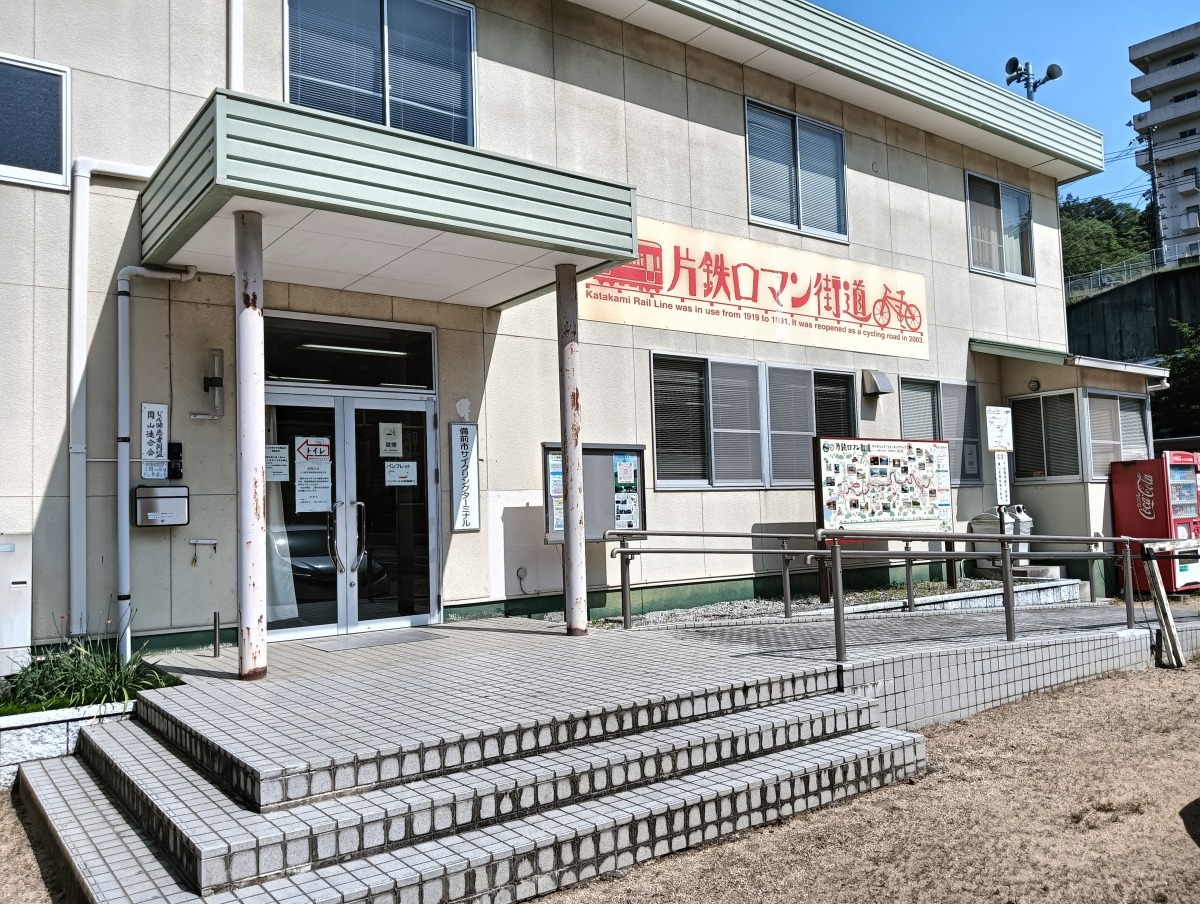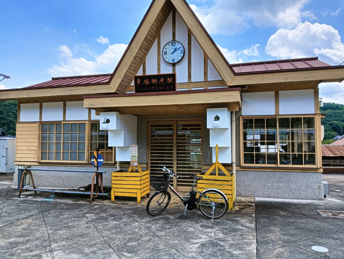 「柵原ふれあい鉱山公園」から約300mのところにある「黄福柵原(こうふくやなはら)駅」。