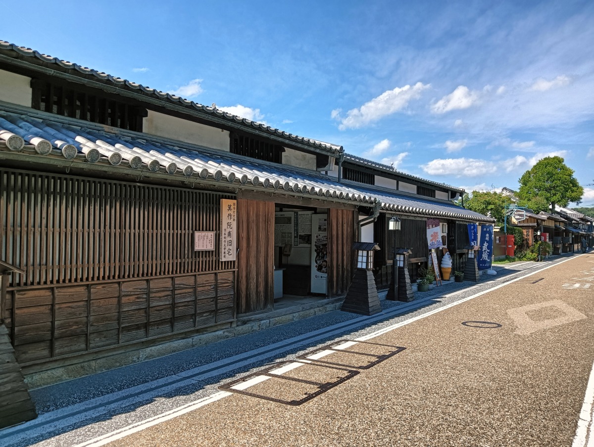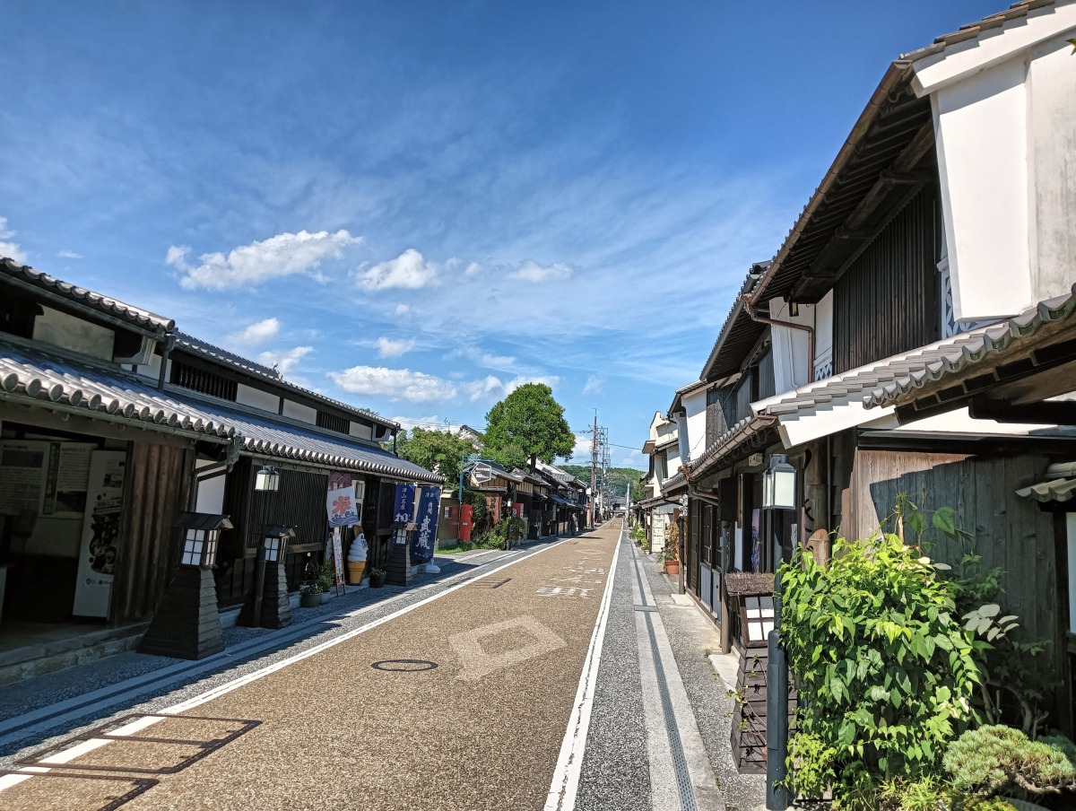 岡山には矢掛宿(伝統的建造物群保存地区)や倉敷美観地区など歴史的街並みが保存されている場所が多いですが、ここもその1つです。高い建物が無いので空が広く気持ち良いです。