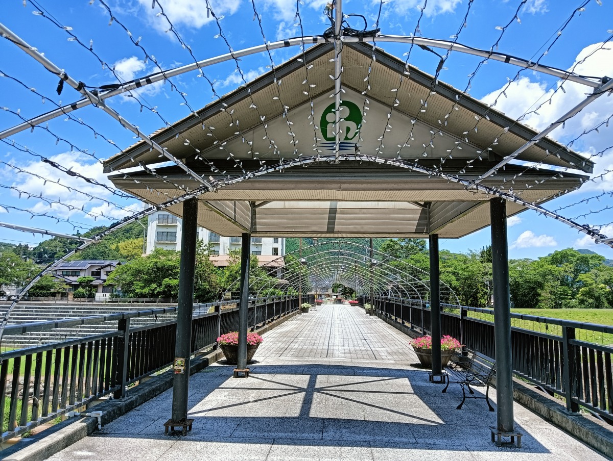 日帰り温泉施設「湯郷鷺温泉館」前にある足湯です。皆様、足湯を体験した事ありますか?私は結構好きで見かけるとついつい長居してしまいます。足の疲れがとても癒されます。