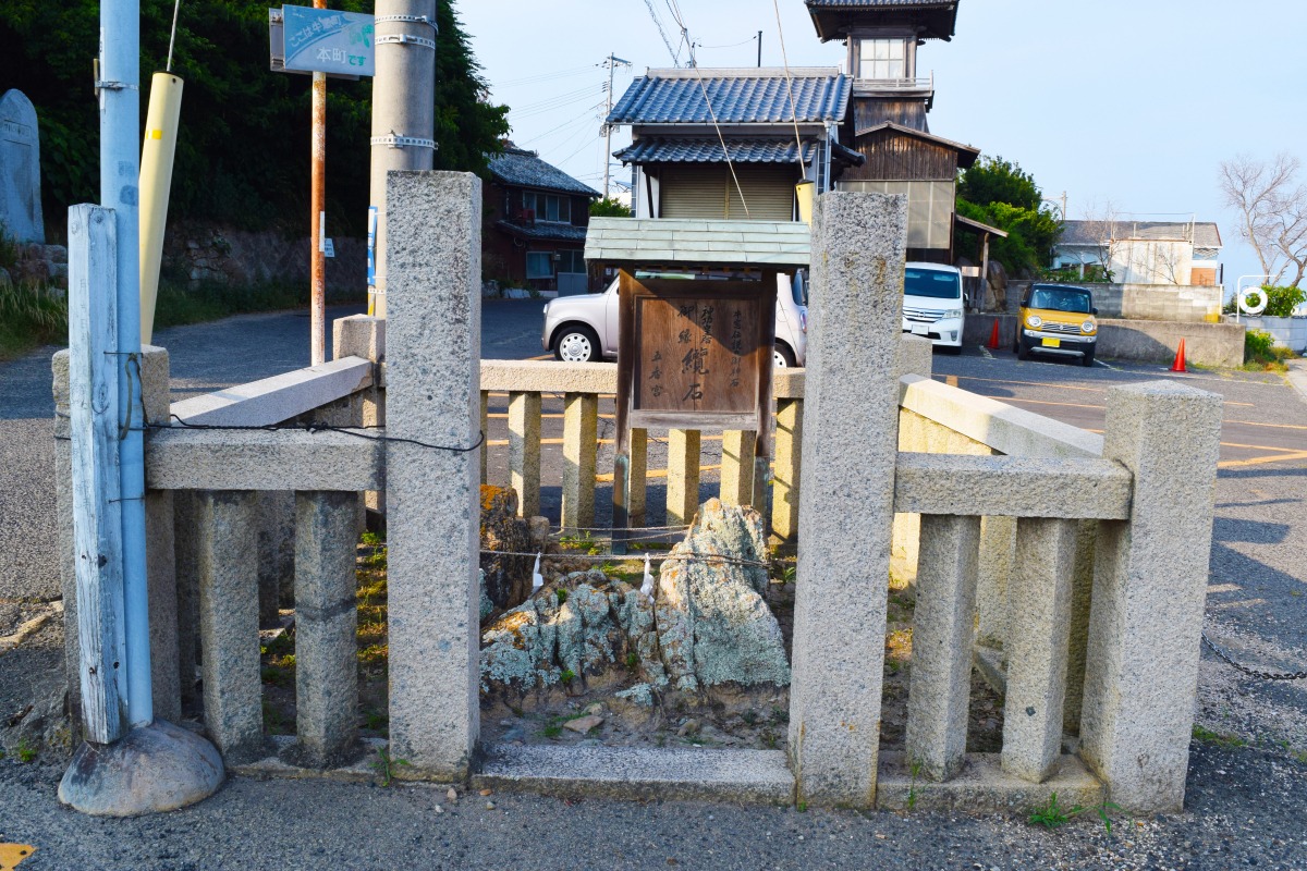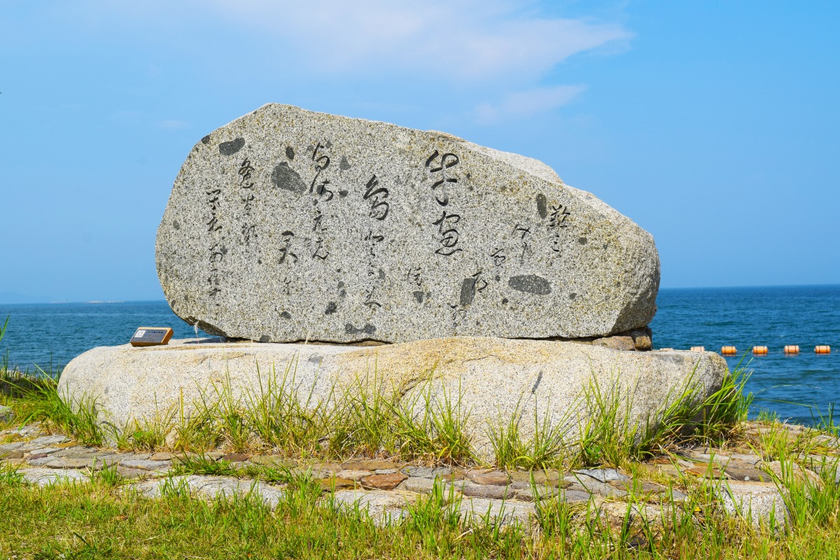この岩は「神功皇后(じんぐうこうごう)」が船をつないだと伝わる「ともづな石」で、牛窓は「神功皇后」にまつわる伝承の多い土地です。