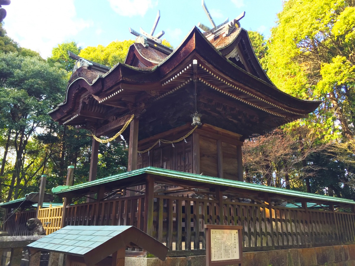 「五香宮」は、神明造りに銅板葺きの屋根という荘厳な社殿が目を引きます。当初は、「神功皇后」をお守りしたとされる「住吉三神」が祀られていましたが、江戸時代の岡山藩主「池田光政」により京都伏見の「御香宮神社」から「神功皇后」「応神天皇」が勧請され、合わせて五柱の神を祀るので「五香宮」となったそうです。