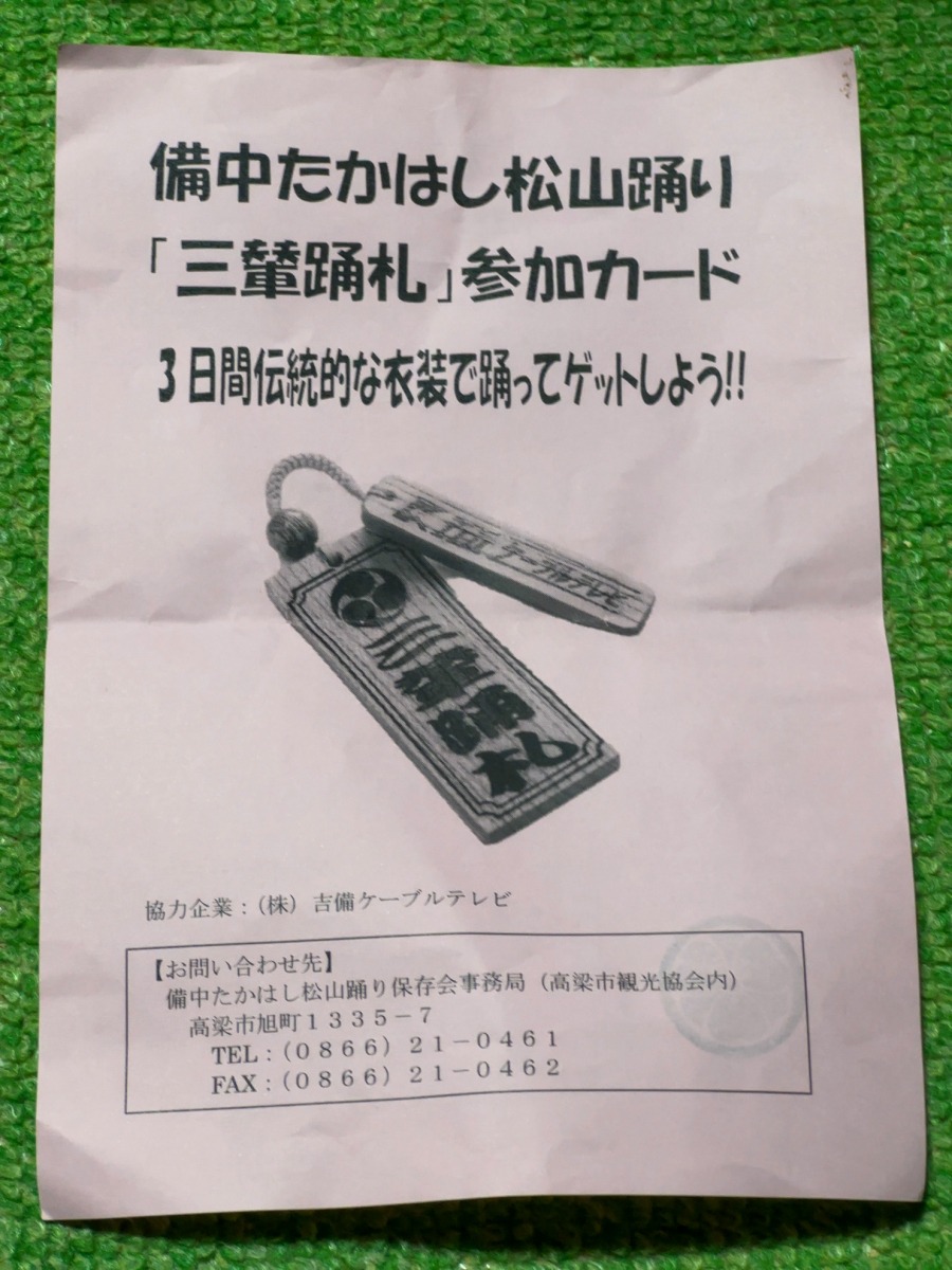 本部にて初日(8月14日)に配布されるスタンプカードをもらい、3日間通して浴衣を着用して踊りに参加すると「三輦踊札」を手にすることができます。
