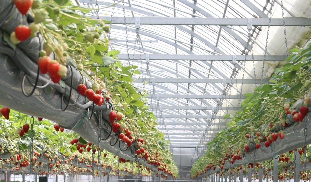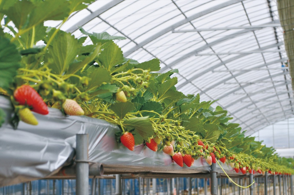 のどかな雰囲気の中でいちご狩りができるいちご園です。高設栽培なので、立ったままの姿勢で水耕栽培されたきれいないちごが楽しめます。