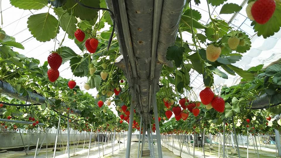 岡山市南部の田園地帯にある、南欧ののどかな農村をイメージした体験型農業公園です。「あきひめ」「かおりの」を中心に4品種が地上90cmの高設ベンチで栽培されています。