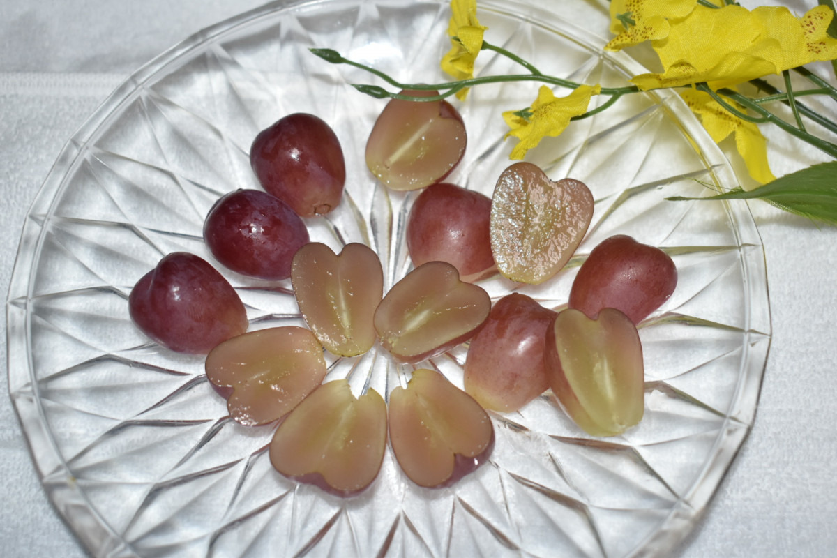 最近注目されているのが断面がハート型の切り口を持つ「マイハート」という品種。もちろん種無しです。ケーキなどのスイーツに引っ張りだこの見た目がとても映える可愛いぶどうです。2品種ともに9月中旬~10月初旬に出荷されます。